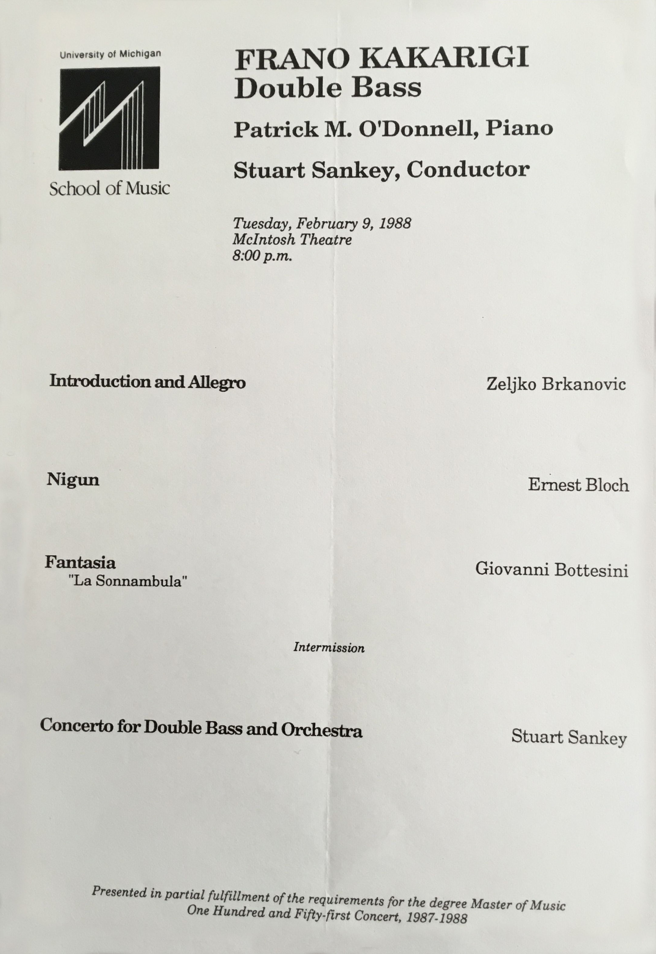 1. “Music at Michigan” The university of Michigan School of Music. vol. 20, no. 1, Fall 1986, p. 19.