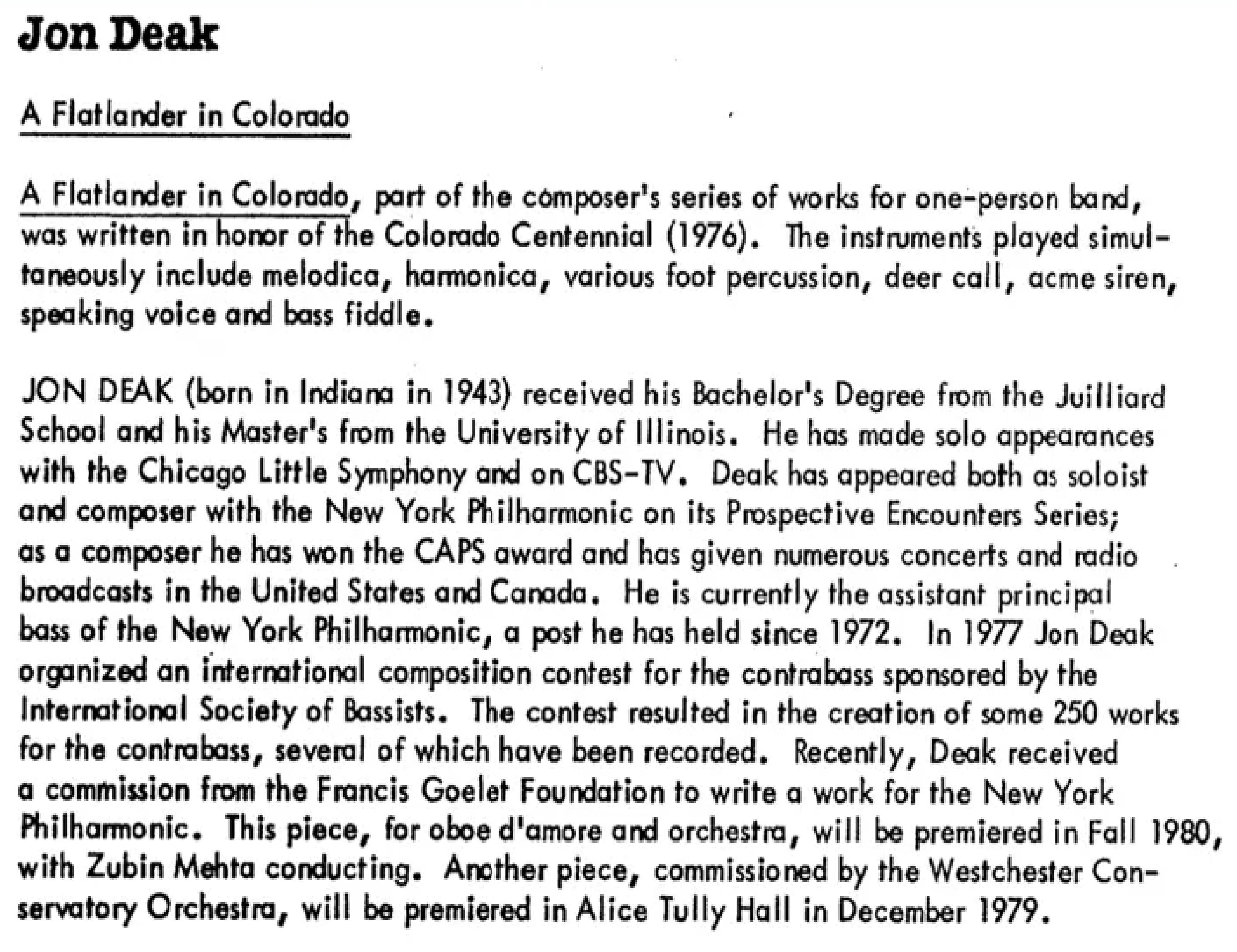 Purpose: With some compositions an online page or pages dedicated to a particular bass composition exist, and in those cases these pages are cited here with a direct link. These pages may come from the composers’ sites or independent sites that may offer pertinent information.