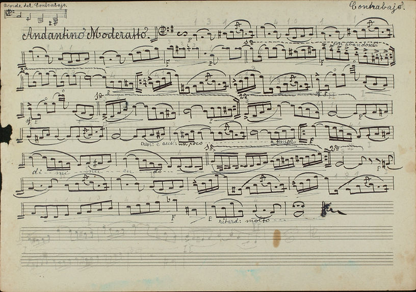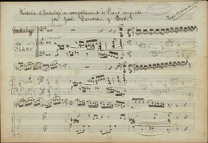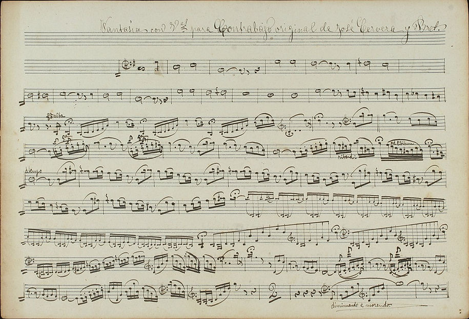Purpose: For all historical research projects of compositions, the manuscript data are commonly the starting point. Therefore this field entry will be available for all bass compositions’ manuscripts records, which by chances have bee produced by independent libraries that house these artifacts or by RISM itself. In most cases these records will inform about the manuscript title, the size and length of document, while RISM may also offer musical incipits for each movement. For this bibliography however, the Manuscript Data may also be featured by an independent or a non-institution-affiliated pages, where data and wider information on the manuscript for a particular piece can be located. The manuscript as stated in this field actually implies both a handwritten score by a copyist or a composer’s autograph written by composer’s own hand. The distinction between those two types is not made at this stage of indexing, but may be offered in future development.