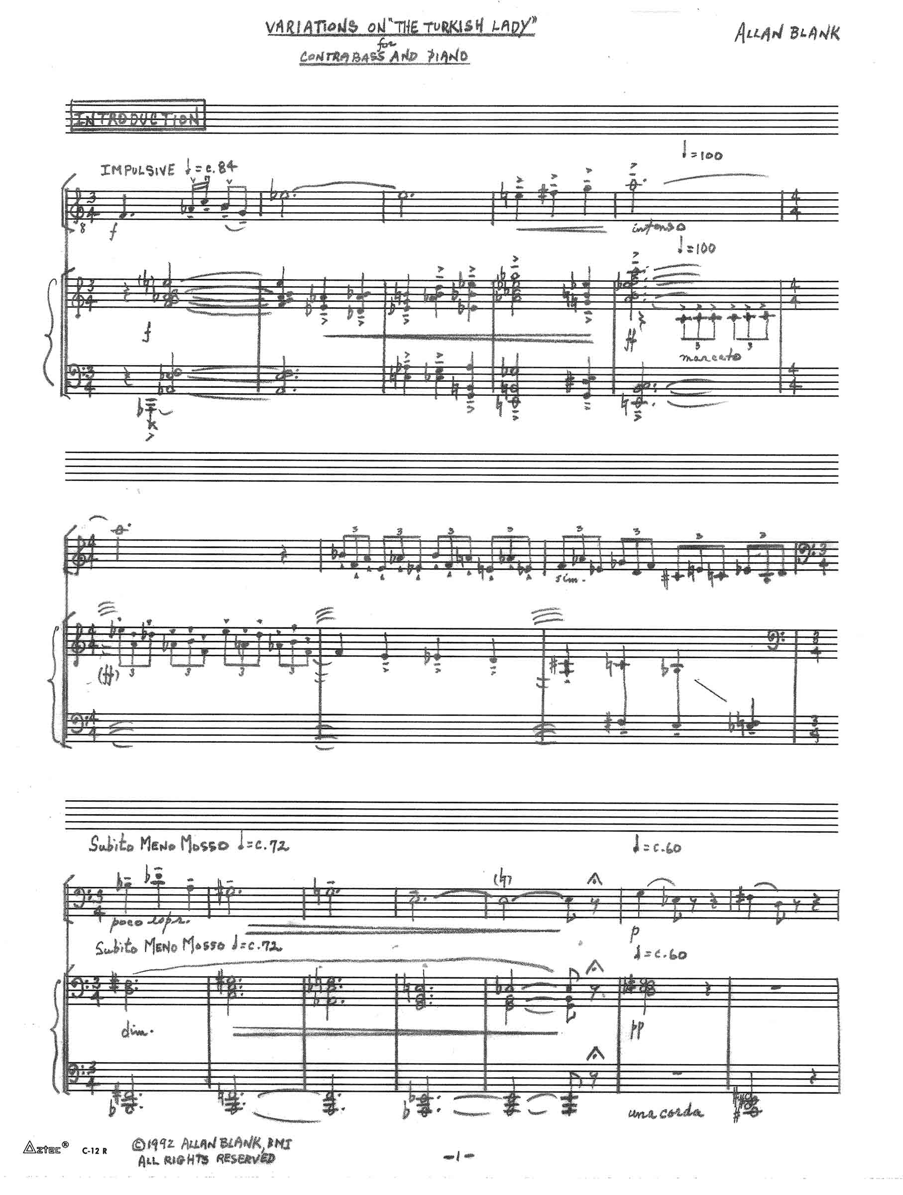 [ Aria for Double Bass and Piano ]