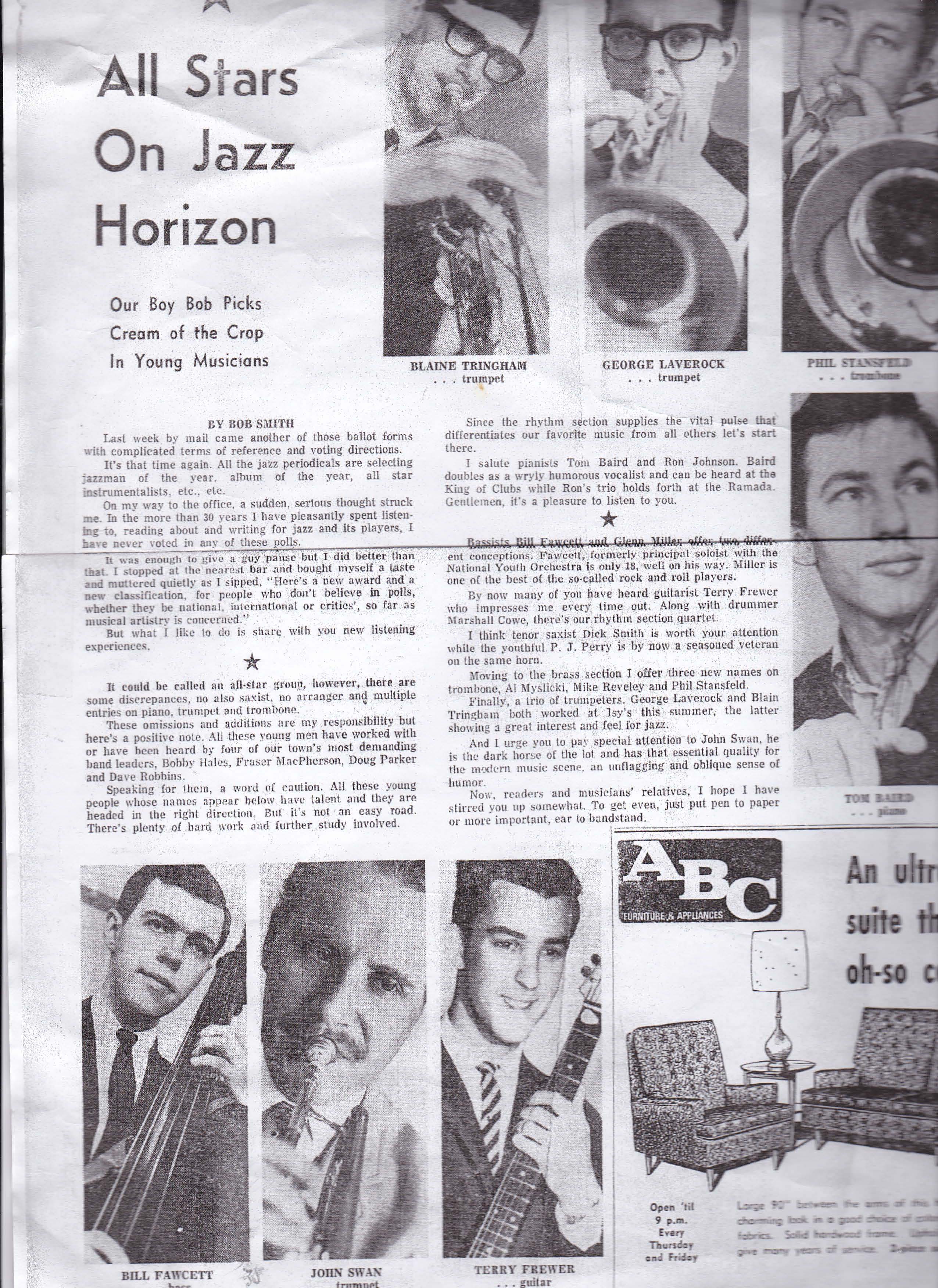 Smith, Bob. “All Starts on Jazz Horizon” The Vancouver Sun Friday, 4 Nov. 1966: pages unknown Article Link