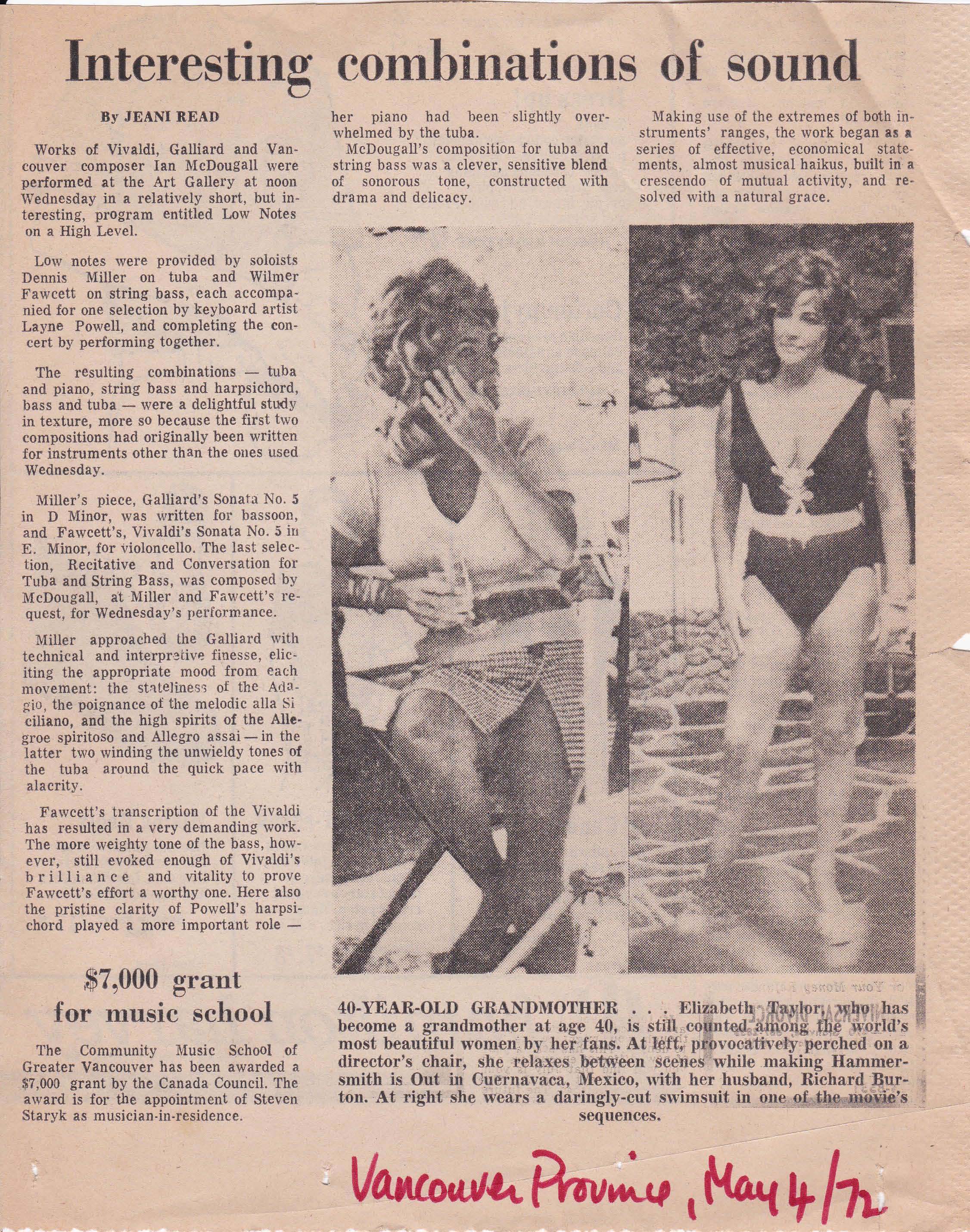 Read, Jeani. “Interesting Combinations of Sound.” Vancouver Province 4 May 1972: page unknown. Article Link
