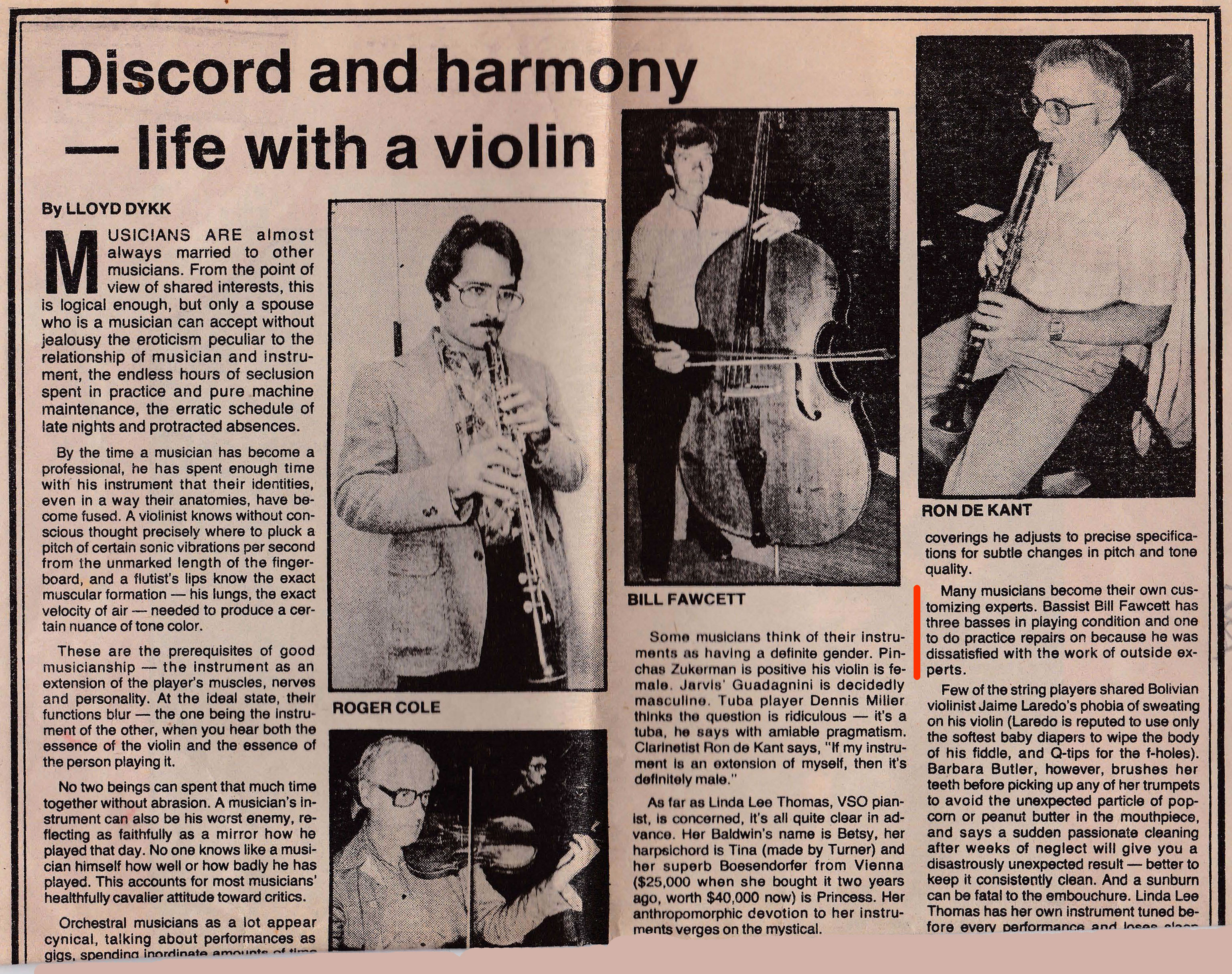Dykk, LLoyd. “Discord and Harmony – Life With a Violin” The Vancouver Sun Friday, 14 Sep. 979: page unknown Article Link