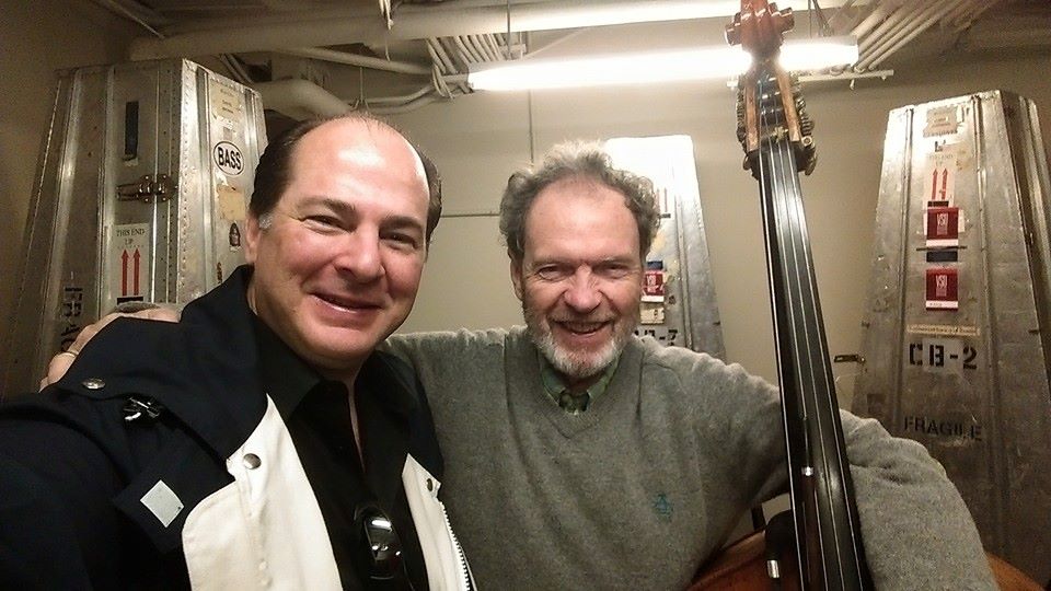 Wilmer Fawcett with violist Nicolo Eugelmi. Bass case room in the bass-ment of the Orpheum Theatre, Vancouver. April, 2015. Image Link