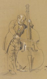 Thoma, Hans. Kontrabassist. Drawing, 1882, from Simon Ravenstein’s house called “Zum Kaiser Karl” (or “Fratzeneck”), Frankfurt am Main, Germany. Located at Städel Museum, Frankfurt am Main, Germany, o.n. SG 2007 Z.