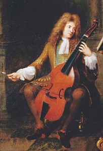 In this iconography you will note that the period bass musicians often read the music from the continuo score over the keyboard player’s shoulder or read it from separate parts that may or may not rest on the music stands. The music presented in these parts however would be written within the staff system and would not show any “experimental” register spikes that we may associate today with modern music notation. Thus for the use with those instruments that are clearly and unambiguously 16 foot instruments (example Praetorius – Groß Contra-Bass-Geig – 1620) the bass parts would simply be “doubled” from the main score “as is” and be given to performer to adapt it and perform it as good as one could on their large fiddle. The “adaptation” process in the case of all 16 foot register instruments would be nothing else than the octave transposition to suite the basic positions their instrument had to offer, and as such probably did not require any extra tinkering beyond a simple effort to match the right notes within the range their instrument had to offer.