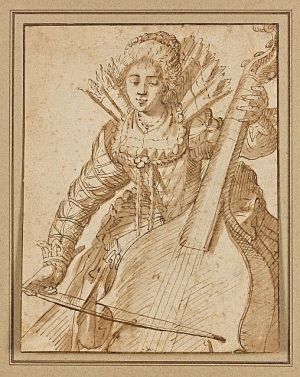 • A description from British Museum page which says “a female musician plays a cello” may not be accurate in respect to this instrument, since it predates the standard violoncello form.