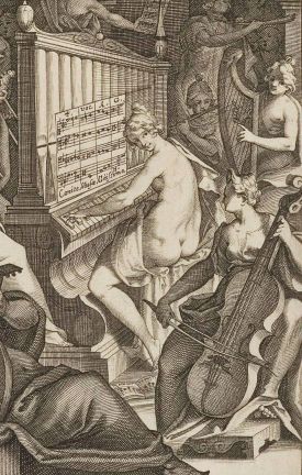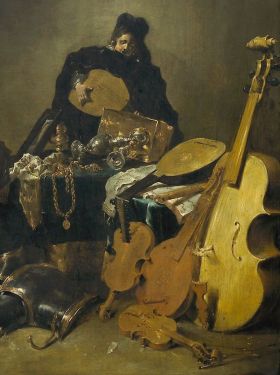 As with 16th century iconography, there will be very few iconographical representations of the actual 17th century double basses that can be unequivocally associated with the modern double bass. Yet, there will again be many man sized stringed bass instruments that appear similar to modern double basses, and along a variety of other larger predecessor bass instruments that have served the bass function in this period. In general you will observe a great flux of shapes, forms and sizes among the bass instruments that in many cases still elude the common stringed instrument classifications.