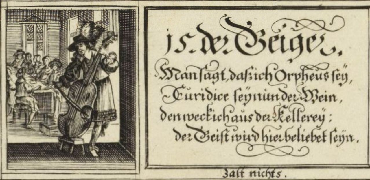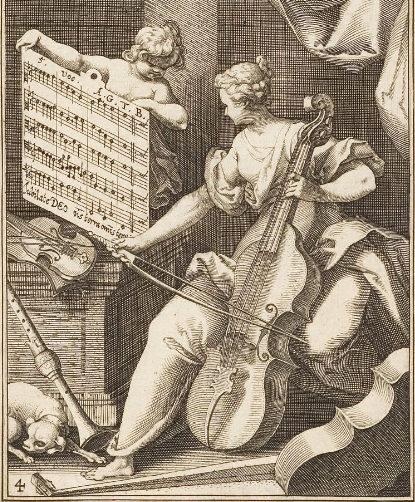 Anonymous. Violone. Etching, 1603, Salzburg, Austria. The source of this image is at the present unknown.
