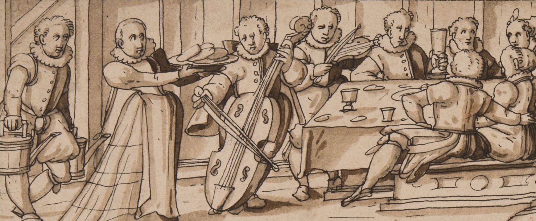 • This image of strolling musicians comes from an exceptional volume of drawings that documents the celebrations in honor of the christening of Princess Elizabeth of Hesse-Kassel. This event, which took place over four days and featured “lavish games, tournaments, and fireworks”, was also characterized as the “last knight games in Europe.” Now, whether true in respect or not, it obviously was a spectacular event for the contemporaries, and actually is impressive even for us today when we peruse the pages of this unique book.