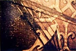 • The other details visible on this instrument are two pegs on the side, which may imply a four stringed instrument. One can also note the frets on the fingerboard. The scroll box appears somewhat “twisted” in respect to the rest of the neck. Also, this image offers one other unique detail, which is the protrusion of the neck in the back plate that looks similar to the one visible at Moncornet – La Glorievse Campagne – 1669 . In respect to the body outline, this instrument appears to follow a general violin form.