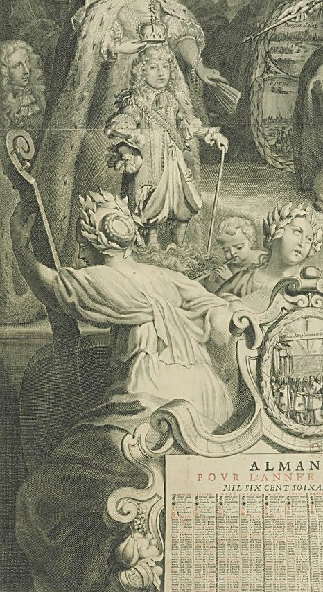 After1690, Joseph I was crowned as King of Romans, and he has held this title until his ascension to the Austrian throne as Emperor in 1705. These dates are of importance for dating this image as likely after 1690, he would have been titled on this image as King of Romans unless this title change was not of importance to the author of this drawing.