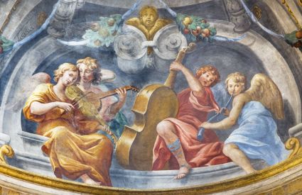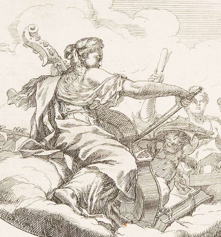 • Further study of this painting may attempt to correlate this instrument with the period instruments listings in late 17th century instrumental music scores, and likewise the opus of composers active at Rome at the time. Chances are that this instrument was called Violone in some of these sources, but it would be interesting to see if Contrabasso is cited in some of them as well.