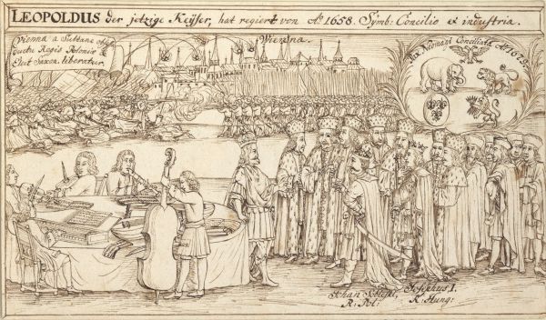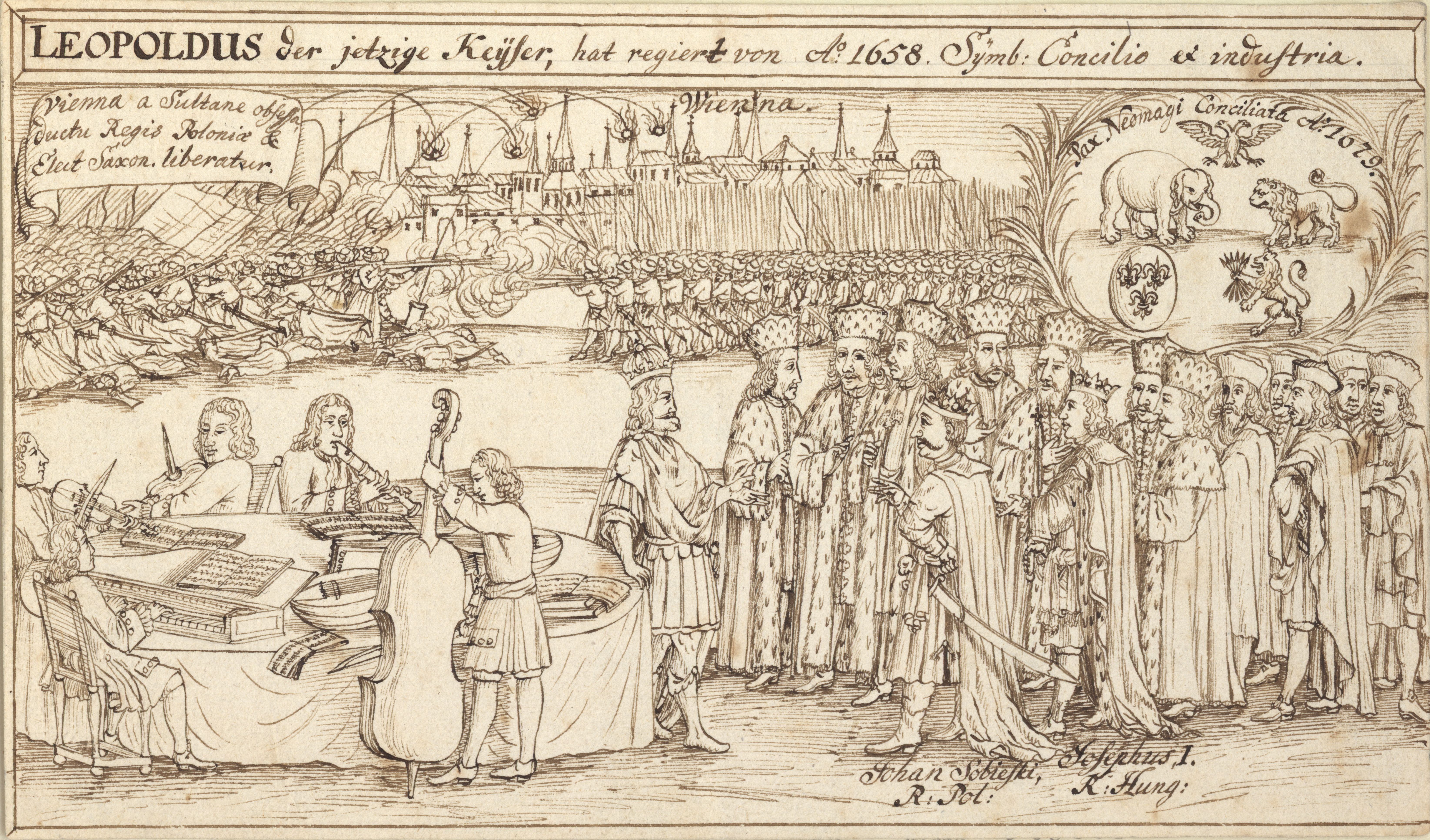 Anonym. Leopoldus (Emperor Leopold meets Polish King Jan Sobieski), Drawing, 1698, City or origin, Country of origin. Located at Uppsala University Library, Uppsala, Sweden, i.n. 5106 (Bildsök-id), 6336a 162 (Davidssonnummer : Svensk handteckning), alvin-record:86617 (alvin opac).
